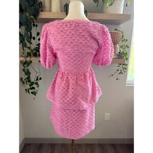 Lost Wander Pink Textured Puff Sleeve Top & Mini Skirt Set Size S NWT