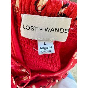 Lost & Wander Red Floral Long Sleeve Midi Dress Size L