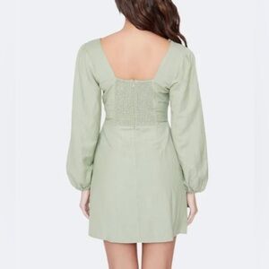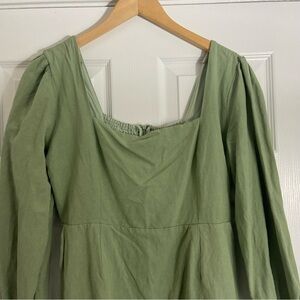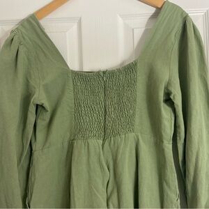 Lost + Wander Sage Green Emilia Mini Dress Linen Blend Sz L