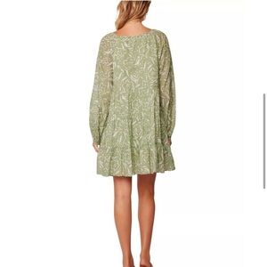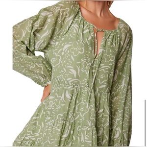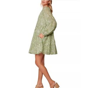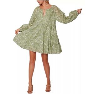 Lost + Wander Saguaro Blooms Printed Cotton Mini Boho Dress Sage Green Size L