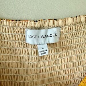 Lost + Wander Short Puff Sleeve Blouse in Orange and Yellow Floral - Size L