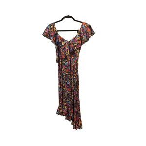 Lost + Wander Sleeveless Flora Garden Asymmetric Hem Ruffled Midi Dress Size XS.