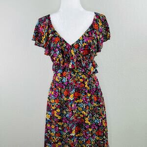 Lost + Wander Sleeveless Flora Garden Asymmetric Ruffled Midi Dress Large NWT