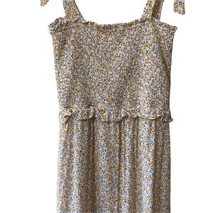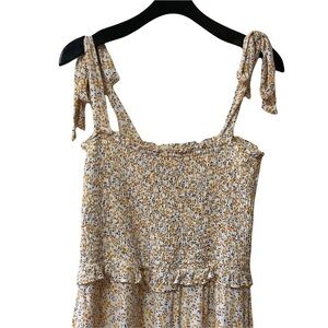 Lost+Wander Endless Summer maxi dress in a yellow floral. Smocked paneling at the bodice gives a charming maxi dress definition while textured fabric and adjustable tie straps make it a standout style choice. This Lost + Wander dress is a must-have for summer days and beach getaways alike. Has a faint spot on the skirt lining but is otherwise in excellent pre-owned condition.