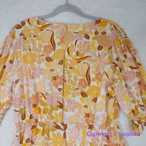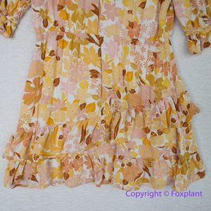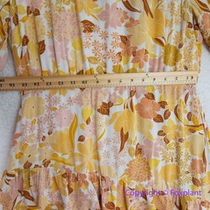 Lost + Wander Sorrento Yellow Multi Floral Print Tiered Mini Dress, size L