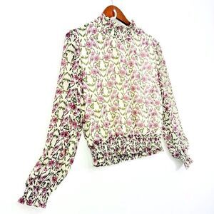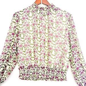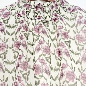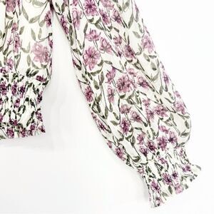 Lost + Wander White Purple Floral Smocked Semi Sheer Lined Popover Blouse