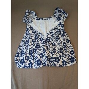 Lost + Wander Womens Floral Print Sun Dress Blue White Linen Blend Size XS