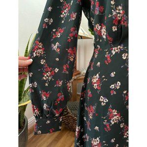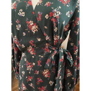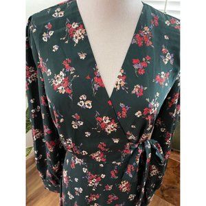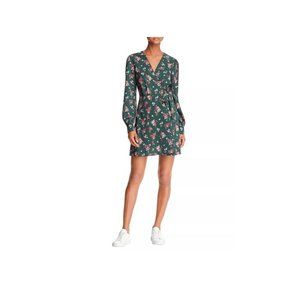 Lost Wander Womens Hailey Crepe Floral Wrap Dress Small Green Print S