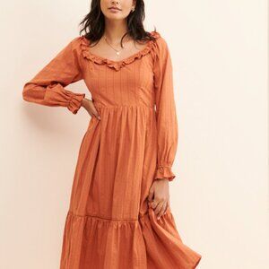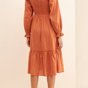 Lost + Wander for Anthropologie Long Sleeved Forever Yours Terracotta Midi Dress
