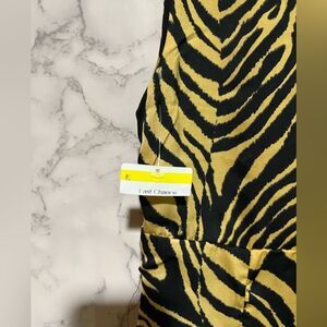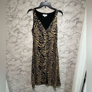 A swirly tiger print adorns this curve-skimming midi dress cut with an airy slit at the front hem. Approximately 46" length