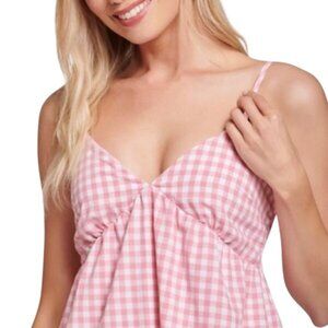 Keywords: gingham dress, babydoll dress, smocked dress, tiered dress, pink dress, summer dress, Lost & Wonder, medium dress, casual dress, gingham, women's dress, cotton dress, v-neck dress, picnic dress, travel dress, vacation dress, tropical dress, cruise dress, vacay dress