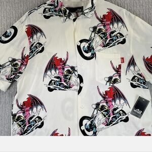 Lost Mens casual button up shirt. Motorcycle Devil Woman