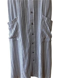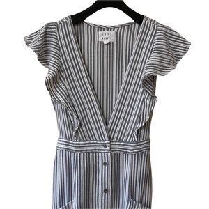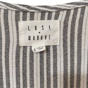 Warm weather days call for the Lost + Wander Kika Grey Striped Button-Up Midi Dress! Light and breezy woven fabric sweeps over a plunging, surplice neckline and short, ruffled sleeves. A banded waist is complete with a tying sash as it tops a chic midi skirt with a button placket and patch pockets. Unlined. In excellent pre-owned condition.