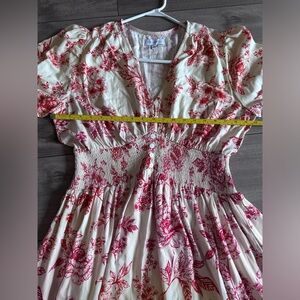 Lost and Wander mini dress floral print ivory red short sleeve size large
