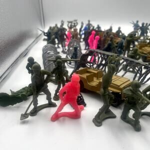 Get ready for an epic adventure with this amazing lot of 100+ toy soldiers, accessories, and tanks! Perfect for collectors, kids, or anyone who loves a good battle scene. This set is packed with endless possibilities for creative play and imaginative storytelling. Don't miss out on the chance to own this incredible collection of miniature military figures and vehicles. Add it to your collection today and let the battles begin! This set includes a variety of poses, a few vehicles and other accessories. Most pieces are in excellent condition, but several show wear or may be broken. See pics for condition. Approximately 110 soldiers in a variety of poses, and a handful of non-soldier pieces.