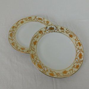 Lot 2 Antique Nippon Spoke Mark Hand Paint Bread Butter Plate Gold White Yellow