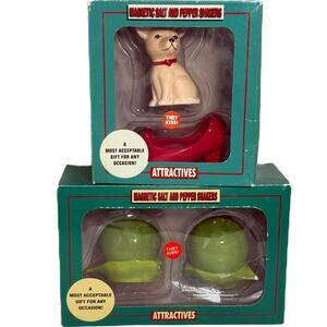 Lot of TWO Pacific Giftware Attractives Ceramic Magnetic Salt and Pepper Shaker Sets. Both in Original Boxes. They Kiss!