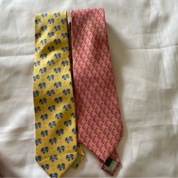 This Lot of 2 Bird Dog Bay Men's Neck Ties are made of 100% silk, featuring a classic design with a multicolor pattern and a logo accent. Handmade by Bird Dog Bay, these designer ties add a touch of style to any man's wardrobe. The adjustable ties are the perfect accessory for any occasion, showcasing the brand's attention to detail and quality craftsmanship. Ideal for those who appreciate fine materials and unique designs, these neck ties are a luxurious addition to any collection.
