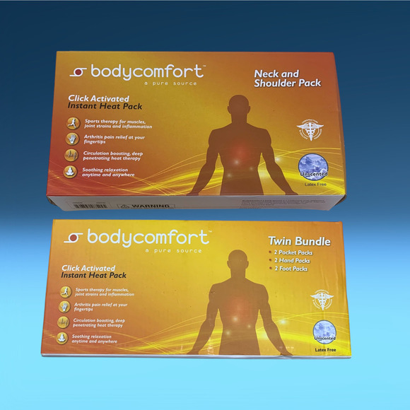 NEW Lot 2 Body Comfort Instant Therapeutic Heat Packs Twin Bundle + Neck & Shoulder SEALED