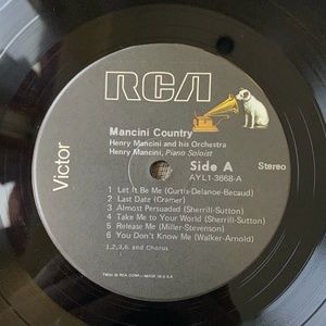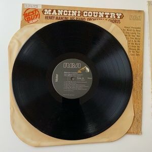Mancini Country : RCA AYL1-3668 from 1970 on RCA Victor. Outer jacket has small sticker on upper left front cover otherwise no markings, cutouts, tears or rips. Record is in EX condition with few light surface scuffs visible.