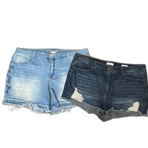 Lot 2 Pair of Denim Jean Shorts Terra Sky Sophia Stars Distressed Plus SIZE 18W