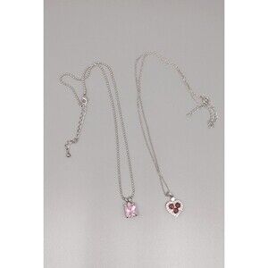 Lot 2 Rhinestone Necklace Charm Silver Tone Pink Red Heart Rectangle Birthstone