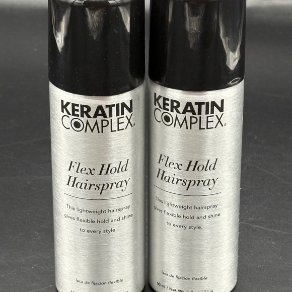 You are considering 2 new cans of Keratin Complex Flex Hold Hairspray - each can is 1.8 oz - these are new and unused. This lightweight hairspray gives flexible hold and shape to every style.