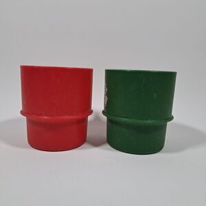 Lot 2 VTG Tupperware Red Green Holiday Christmas Xmas Stacking Cups Mugs 1312