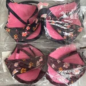 Lot 2 Victoria's Secret Pink Push-up Lace Bra, 32D