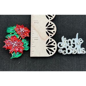 Lot 2 Vintage Christmas Pins Enamel Rhinestone Jingle Bells