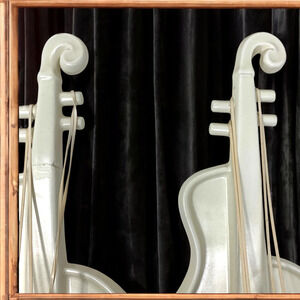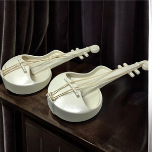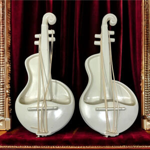 Lot 2 Vintage Red Wing Pottery Violin Cello Ivory Wall Pocket Planter M1484 READ