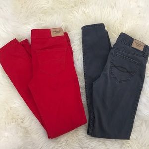 These are both size 0 or 25waist. Super soft stretch material.Red ones are NWOT.Gray ones have been worn and only barely noticeable wear is near the zipper on the front,you can see the stretch ripples a little.Not noticeable when wearing.📦I ship same day!💝Free gift with FULL price purchases,offers/sales excluded!