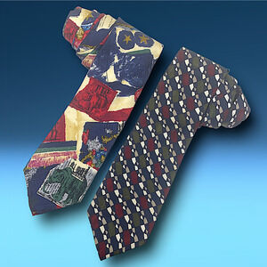 Lot 2 x Vintage 90's Structure Le Collezioni Silk Neckties Ties Abstract Collage