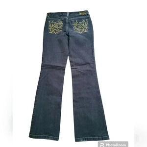 Flared Legs, 5 Pockets, Beautiful Sequins & Embroidery on the Back Pockets, 98% Cotton 2% Lycra, 28 X 32, Dark Grey