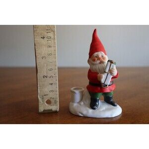 Lot 2x Vtg Porcelain Christmas Elf Santa Gnome Candle Holder 4.25" Taiwan