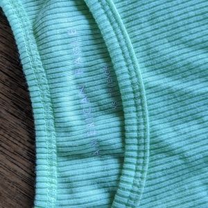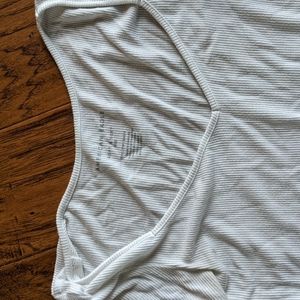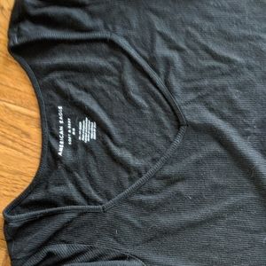 Lot of (3) American Eagle ribbed and cropped t's. Black and White are v-neck, Neon Green is crew neck and has lettuce hem detailing. All three are stretchy and size XS.