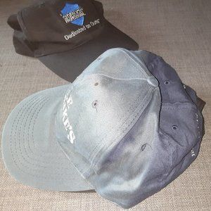Cap 1: Uncle Mike's soft cottony hat--faded in front from sitting on the dashboard-darker blue in the back; well-used and already broken-in; Embroidered on the back "Hunt Better Shoot Better"; adjustable