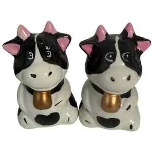 Preowned, Lot of THREE Cow/Cattle Themed Ceramic Salt Pepper Shakers.