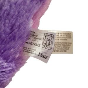 Lot of 3 Fiesta Persians plush animals, each measuring 16 inches long. Includes Butterscotch Red Panda (A59298), Purple Colorful Bean Bag Cat (A57782Z), and Rainbow Cat with glitter eyes. All have long tails and soft plush bodies, great for play or collection.