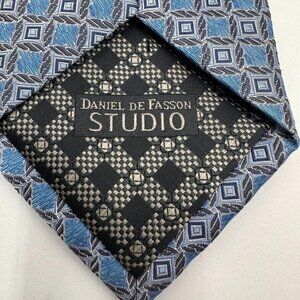 New Lot 3 Men's Silk Classic Ties Izod Daniel De Fasson Studio Rooster Blue Red Geometric Polka Dots