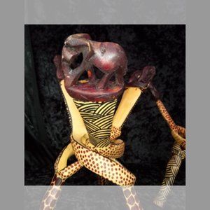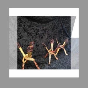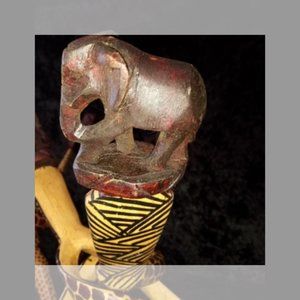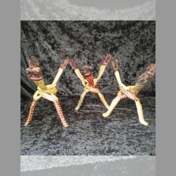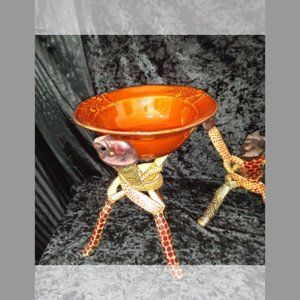 Lot 3 Vintage Carved Wood Bowl Stand Braided Intertwined African Elephant