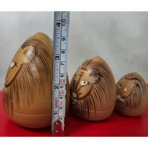 Selling this set of 3 cone shaped Lion Nesting dolls