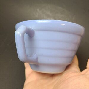 Embrace retro style with these charming blue Platonite milk glass cups and open sugar bowl. Perfect for your morning coffee or tea.