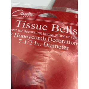 Lot 3 Vintage Honeycomb Tissue Bells Red Christmas Carlton NOS