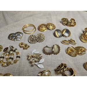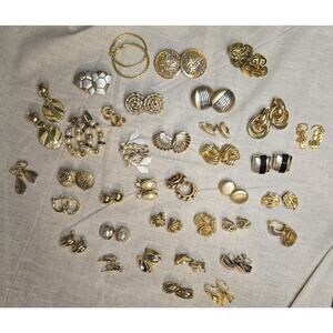 36 pairs of beautiful vintage clip on/screw back gold and silver earrings. Unmarked.
