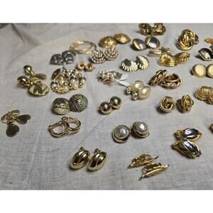 Lot 36 Gold & Silver Tone Clip On Earrings Chunky Pearl Hoop Rhinestone Vintage