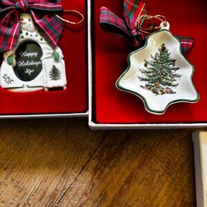 Lot 4 Copeland Spode Christmas tree green ornaments MIB snowman picture frame