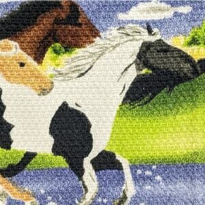 Perfect gift for the horse lover in your life! Colorful horses running drinking & frolicking printed on this set of 4 brand new with tags kitchen dish tea towels. Imported by Destination Linens, these towels have been in storage for over 10 years but are in perfect condition. One of the towels does not have the "Destination Linens" tag. Waffle-weave fabric feels like cotton or cotton blend. Price includes shipping.