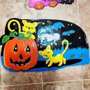 Lot 4 Large Vintage Halloween Plastic Die Cut Decorations Hanging Decor VTG EUC