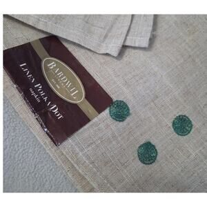 Lot 4 New Bardwil Linen Cloth Napkins Green Polka Dot Embroidered Burlap